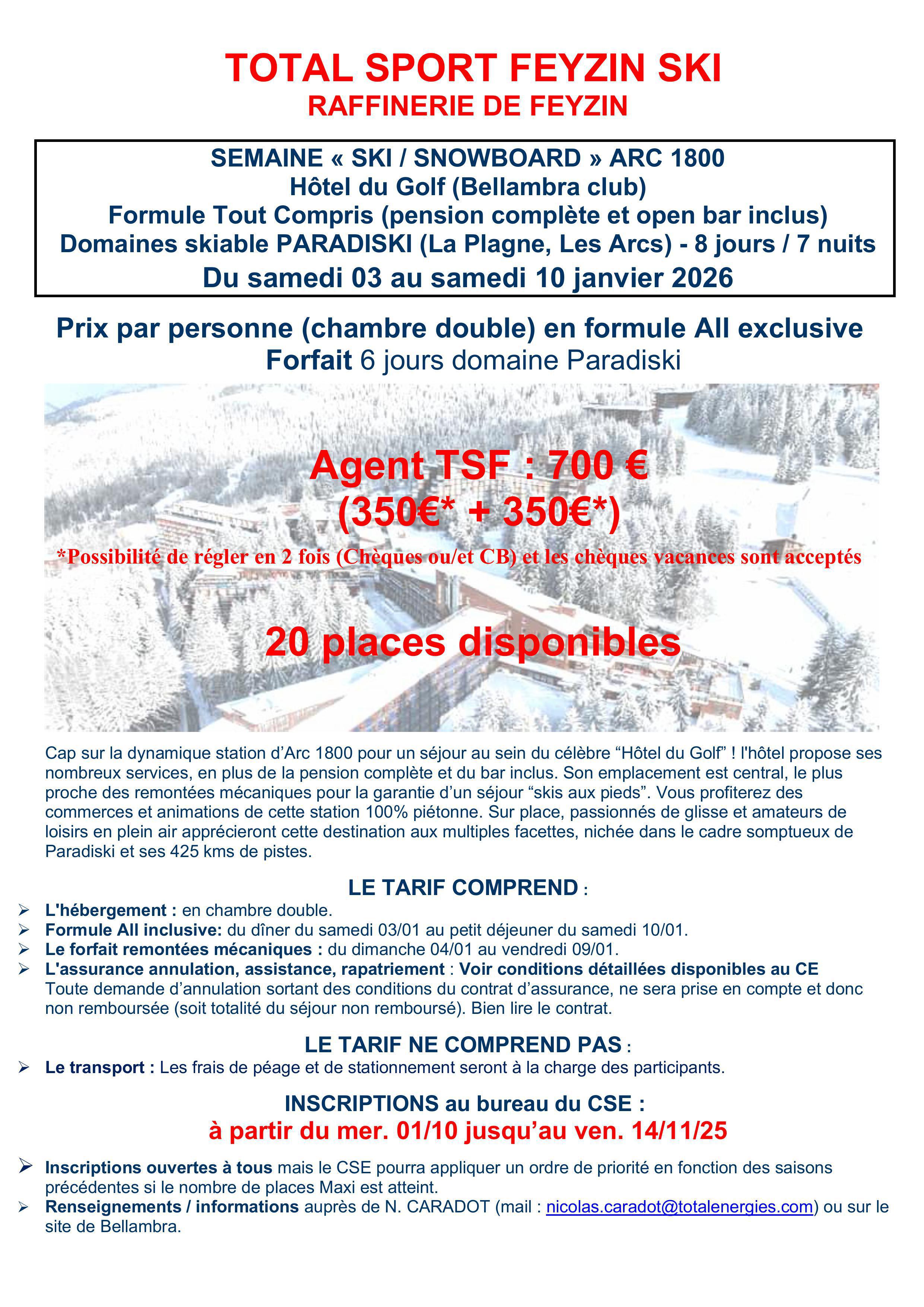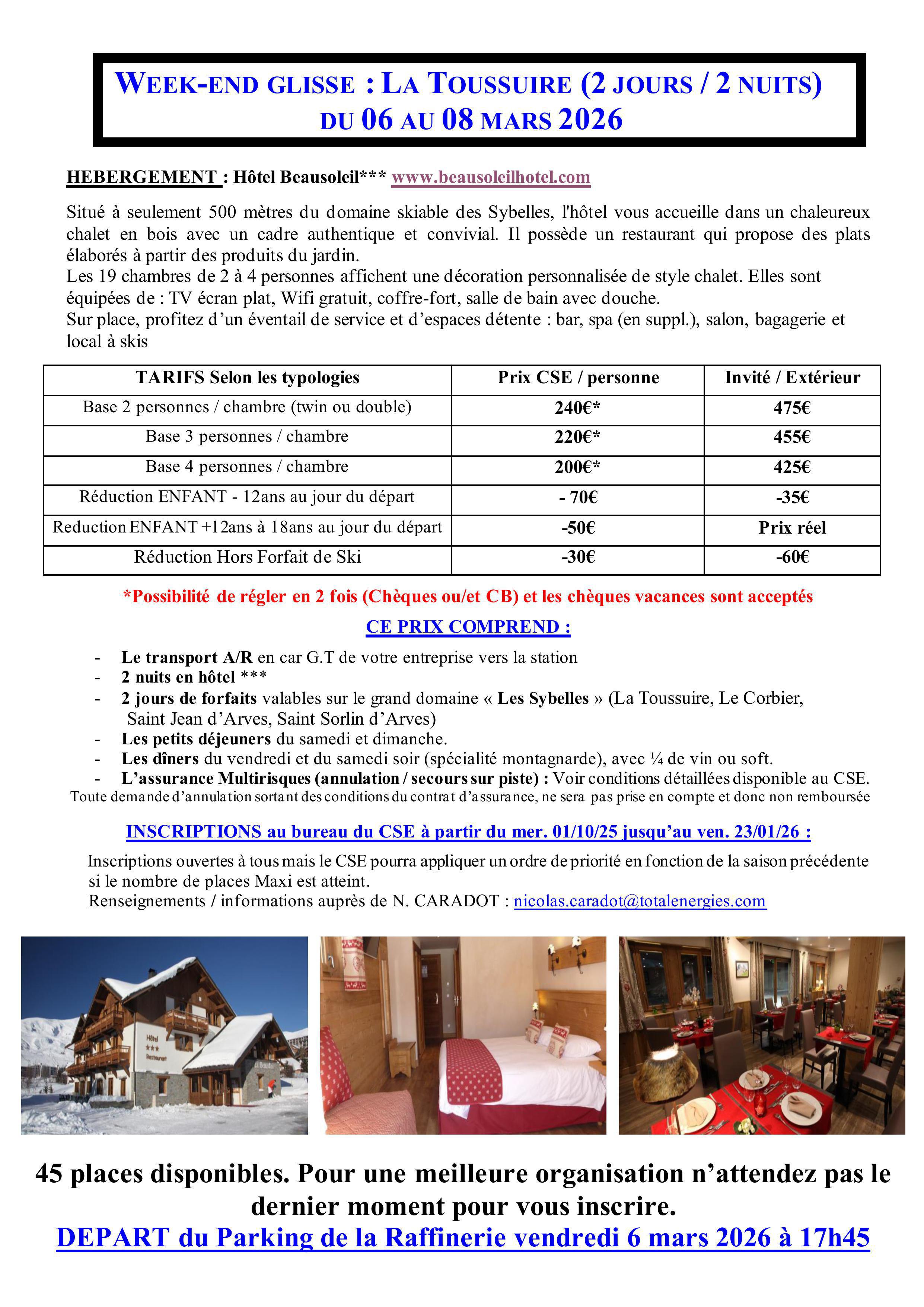 WEEK-END GLISSE «LA TOUSSUIRE » du 06 au 08 MARS 2026