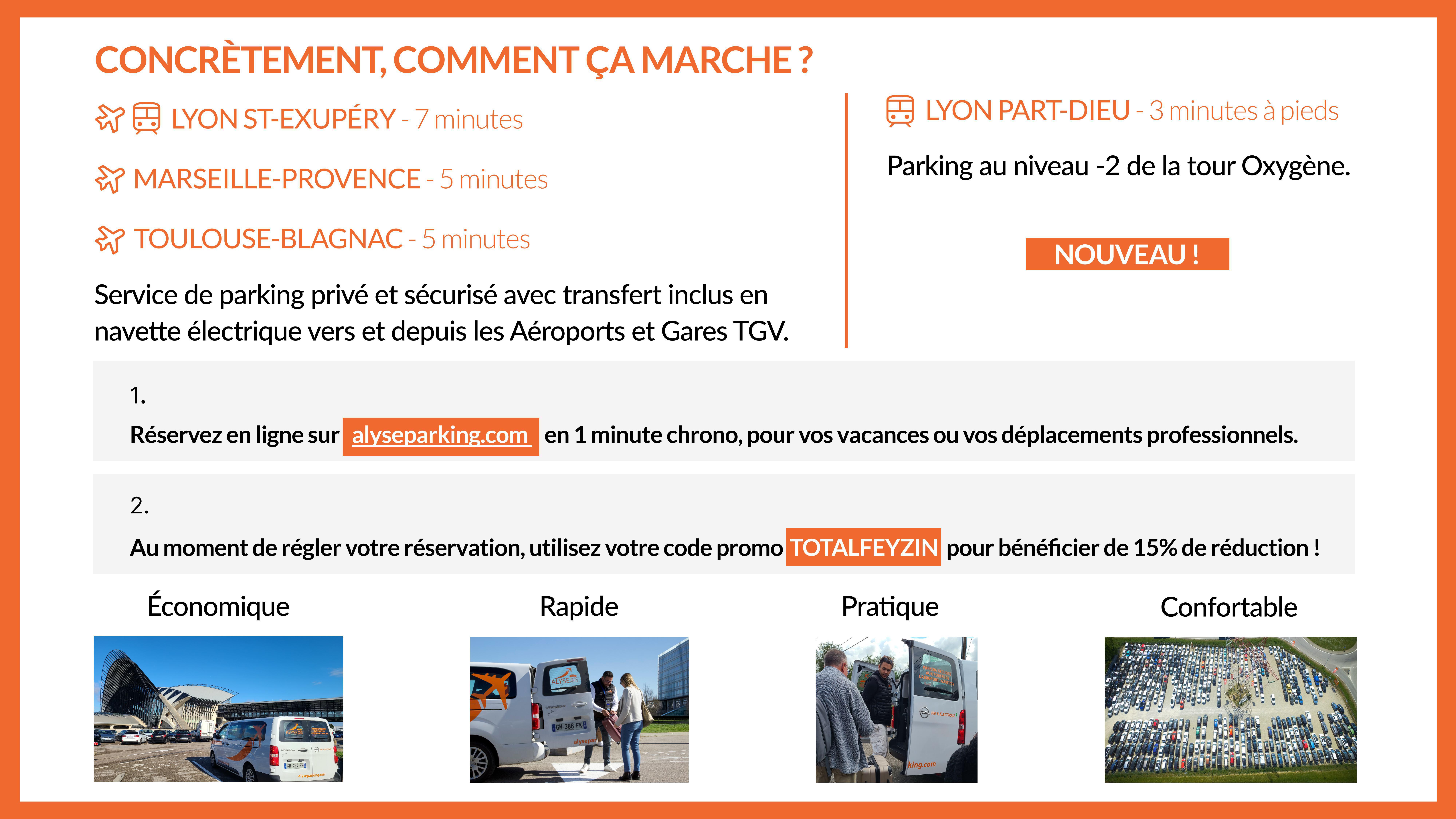 Réservez en un clic sur www.alyseparking.com ou via notre application mobile, avec le code promo TOTALFEYZIN